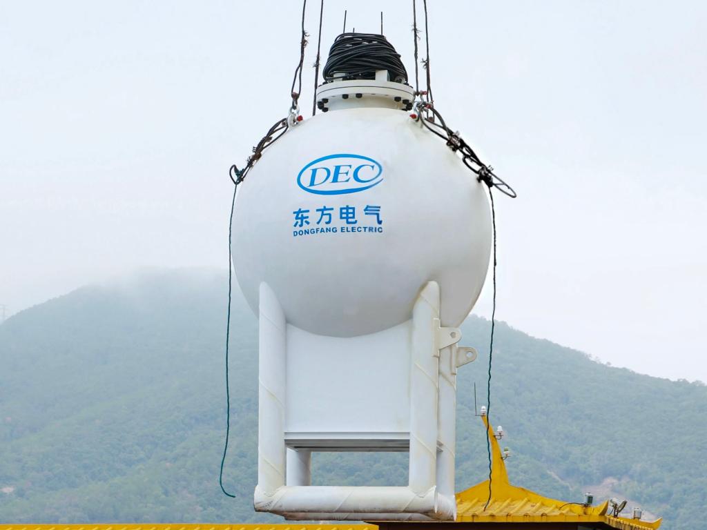 作为破解传统抽水蓄能地理限制的创新方案,“东储一号”突破了陆上抽蓄电站对上下水库的依赖,采用“自带下水库+天然上水库”的独特设计,系统核心的空心球体即为内置下水库,而包裹球体的周边水体则成为天然上水库,通过巧妙利用水下压力环境完成能量的高效存储与释放。在电网负荷低谷期,利用富余电能驱动水泵抽出球内水体,形成密闭负压储能空间,当电网进入负荷高峰期,开启球体入口阀门,水体在内外压差作用下快速涌入,驱动水轮机发电并回馈电网,实现电能“错峰存储、高峰释放”。