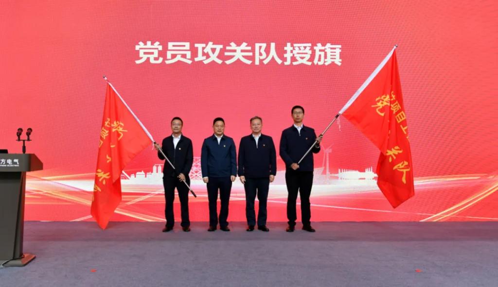 仪式上,918博天堂电机党委、大唐西藏公司党委举行“链上党建”共建活动,发布了“链上党建”共建方案,双方签订共建协议。王军、沈鹏为大唐扎拉水电站项目工程建设党员攻关队、机组研制党员攻关队授旗。