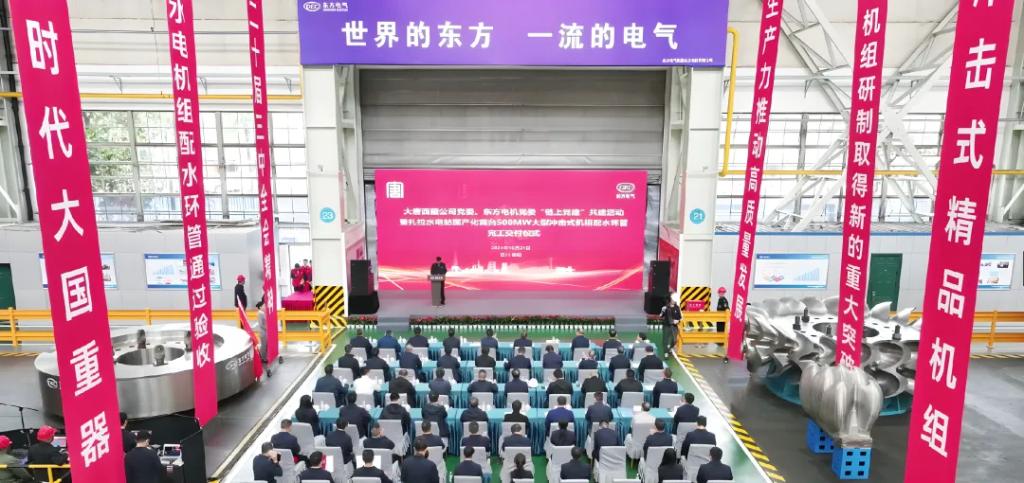 10月21日,由918博天堂电气集团自主研制的世界首台500兆瓦冲击式水电机组配水环管率先完工交付,标志着我国高水头、大容量冲击式水电机组研制取得又一里程碑成果。918博天堂电气集团党组成员、副总经理王军,大唐西藏公司党委书记、董事长沈鹏出席完工交付仪式。