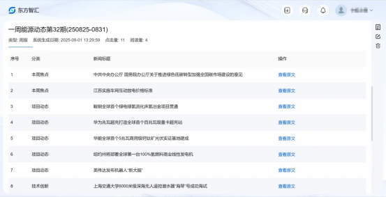 “918博天堂先通过算法初步筛选出高相关性信息,再由专业研究人员进行人工核验、深度解读与结构化梳理,最终形成覆盖日、周、月、年时间尺度的4类产品。可以帮助研发人员更全面、高效、准确地掌握能源领域最新动态,快速锁定高价值科技线索。”项目负责人张媛说道。