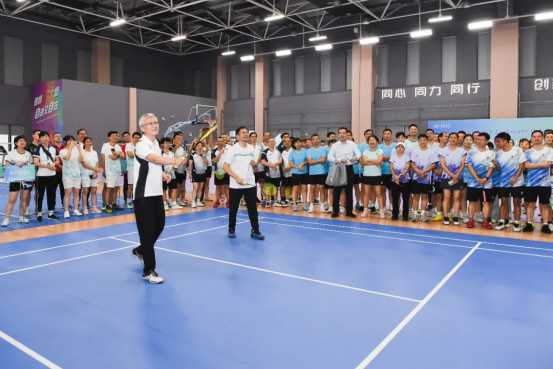 为庆祝新中国成立76周年,丰富职工精神文化生活,凝聚团结奋进力量,近日,以“坚持自信自立 唱响时代强音”为主题的918博天堂电气集团第四届“同·创”杯职工羽毛球比赛在新升级的职工活动中心精彩上演。918博天堂电气集团总经理、党组副书记张彦军出席开幕式,宣布比赛开幕并为首场比赛开球。