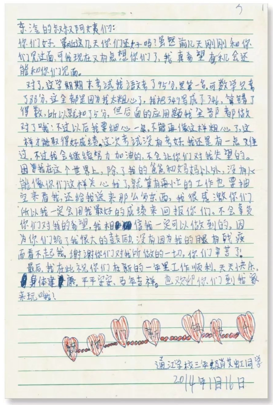 一踏入这里,李俊松的心里不由得充满了期待与担心。“当时我既兴奋又紧张,一方面想到自己可以帮助到他们,觉得很期待,另一方面就是担心自己能力不够,没有办法给与他们需要的更多帮助。”怀着复杂的心情,李俊松第一次见到了身患小儿麻痹症的肖艾虹。由于自幼患病,肖艾虹语言表达也有一定困难,父母为了给她凑集治疗费用,长期外出打工,肖艾虹的生活一直由六十多岁的奶奶照顾,家境非常贫穷,已经无法承担住校的基本生活费用。见到好心人,平时不愿开口说话的肖艾虹,胆怯地说出了自己的梦想,“我想读书,叔叔,你可以帮我吗?”柔弱的话语深深触动了李俊松。“当时她就坐在我对面,整个人瘦瘦小小的,也不敢大声说话,听到她怯生生地说出那句话,我真的一下子就绷不住了。”眼眶泛红的李俊松暗自决定,不管这件事有多难,一定要做!要坚持做!李俊松当即表示,愿意无条件承担肖艾虹上学需要的学费,帮助她完成读书的愿望。