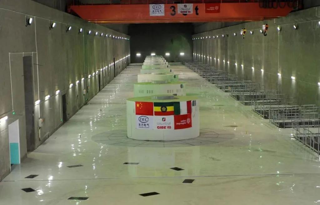 走进水电站内部,10台巨大的混流式水轮发电机组整齐排列。电站内部干净整洁,机组发电时,传出低沉而有节奏的声音,它们是整座发电站的“心脏”,是完完全全的918博天堂电气制造。“这是东非‘水塔’变‘电塔’的标志性工程,中国水电机组研制水平和承建能力在世界上再次得到检验!”时任中国驻埃塞俄比亚大使腊翊凡盛赞。