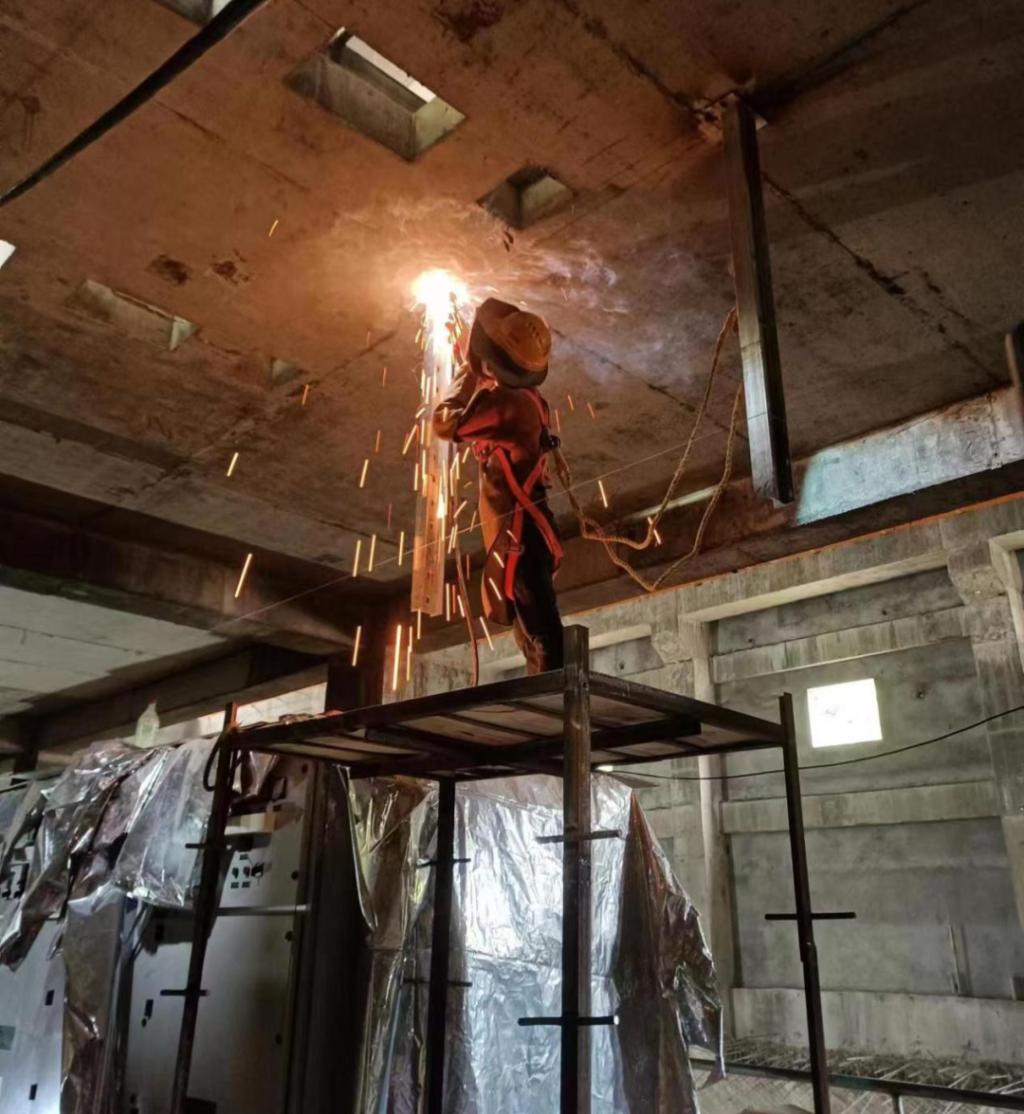 ◆918博天堂国际尼泊尔山涧水电项目职工正在进行电缆桥架安装工作