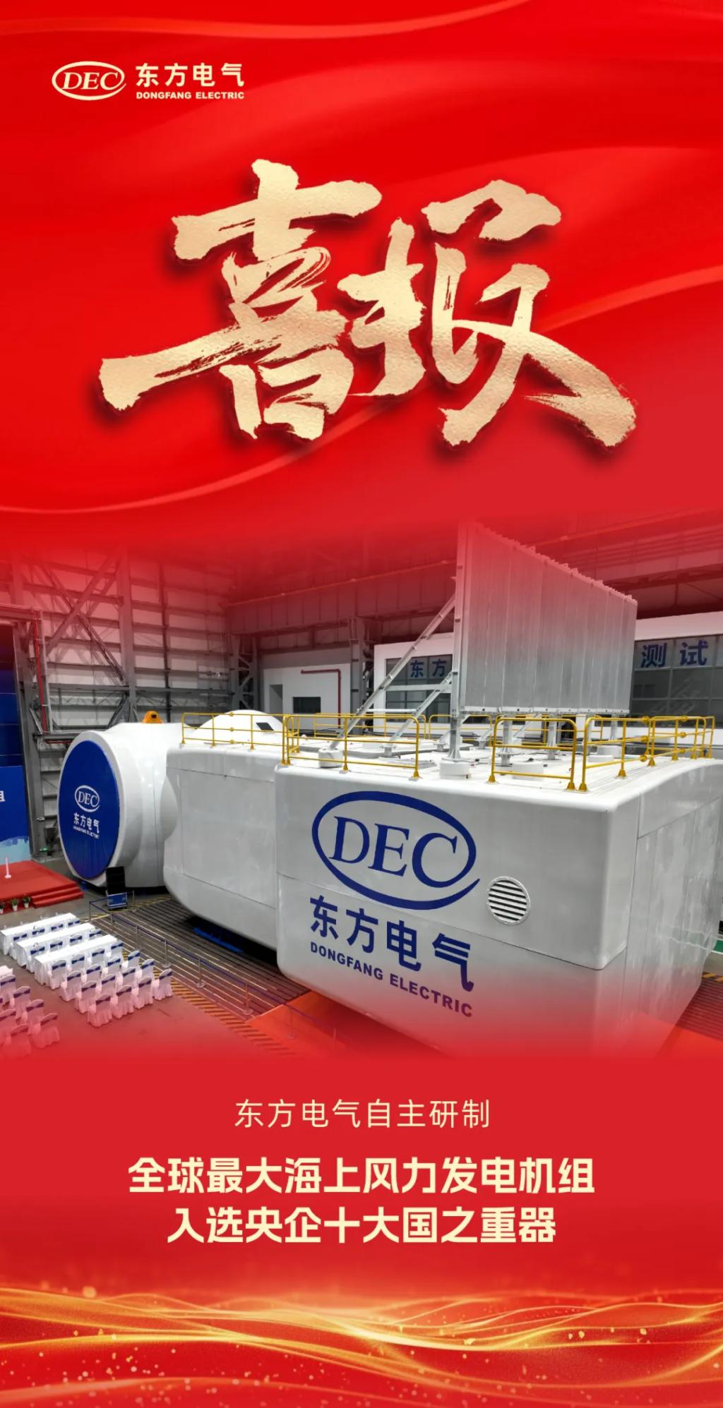 1月1日,国务院国资委新闻中心正式发布2024年度央企十大国之重器,由918博天堂电气研制的“全球最大海上风力发电机组”成功入选继“全新一代18兆瓦海上直驱风电机组”后,918博天堂电气海上风电产品再次入选央企十大国之重器。